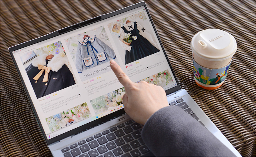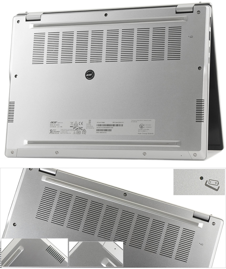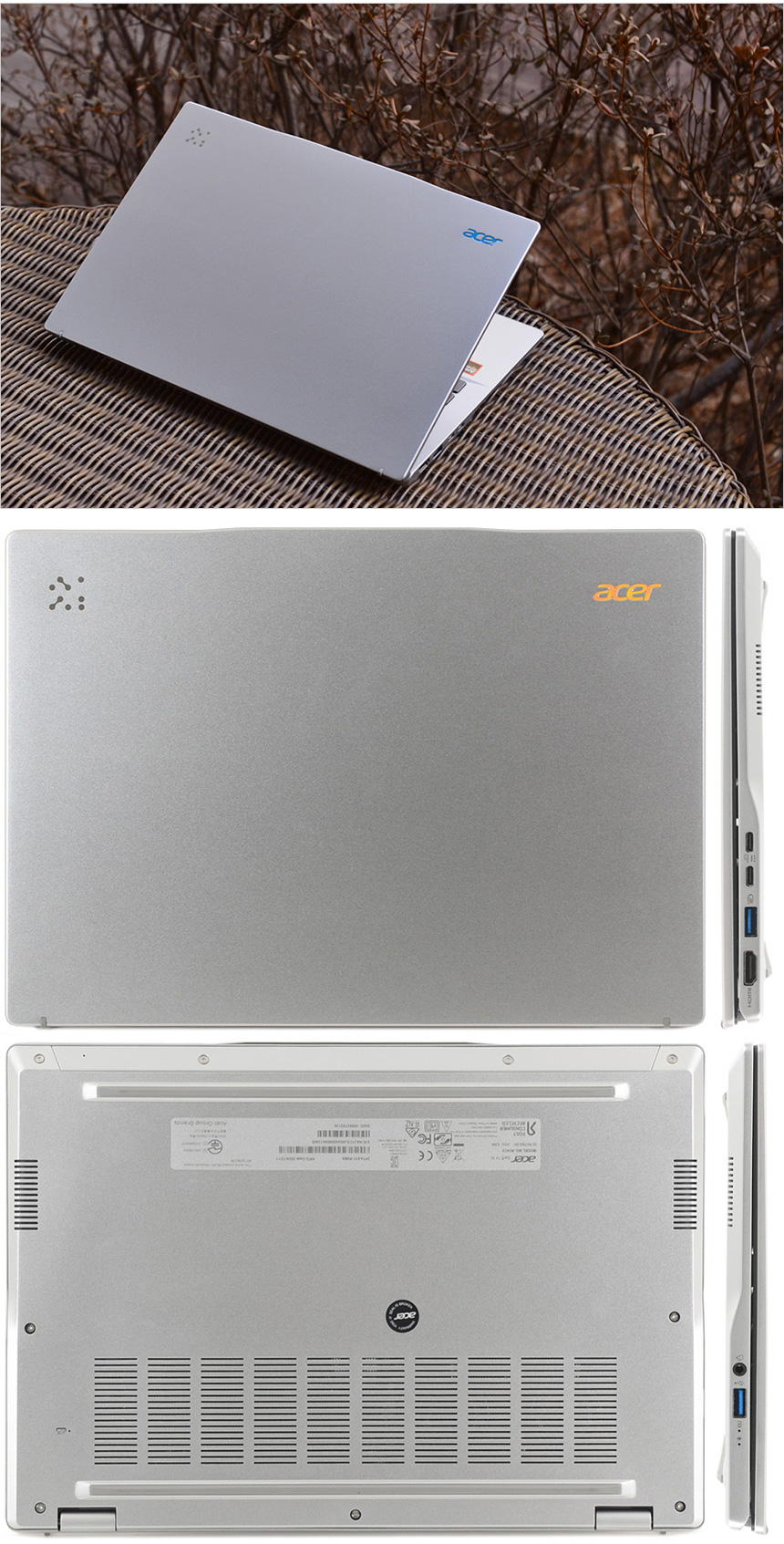 노트북의 디자인은 기존 스위프트 제품들과 같이 깔끔하고 세련된 것을 확인할 수 있다. 플라스틱 소재를 사용한 보급형 노트북과 달리 경량 알루미늄 소재를 사용해 고급스러운 느낌을 자아내는 것은 물론 무게를 줄이면서도 내구성을 한층 높였으며 지문이나 먼지등이 잘 묻어나지 않도록 마감 처리해 항상 깔끔한 외관을 유지할 수 있다. (손으로 잡고 다녀도 지문이 잘 눈에띄지 않았다.)