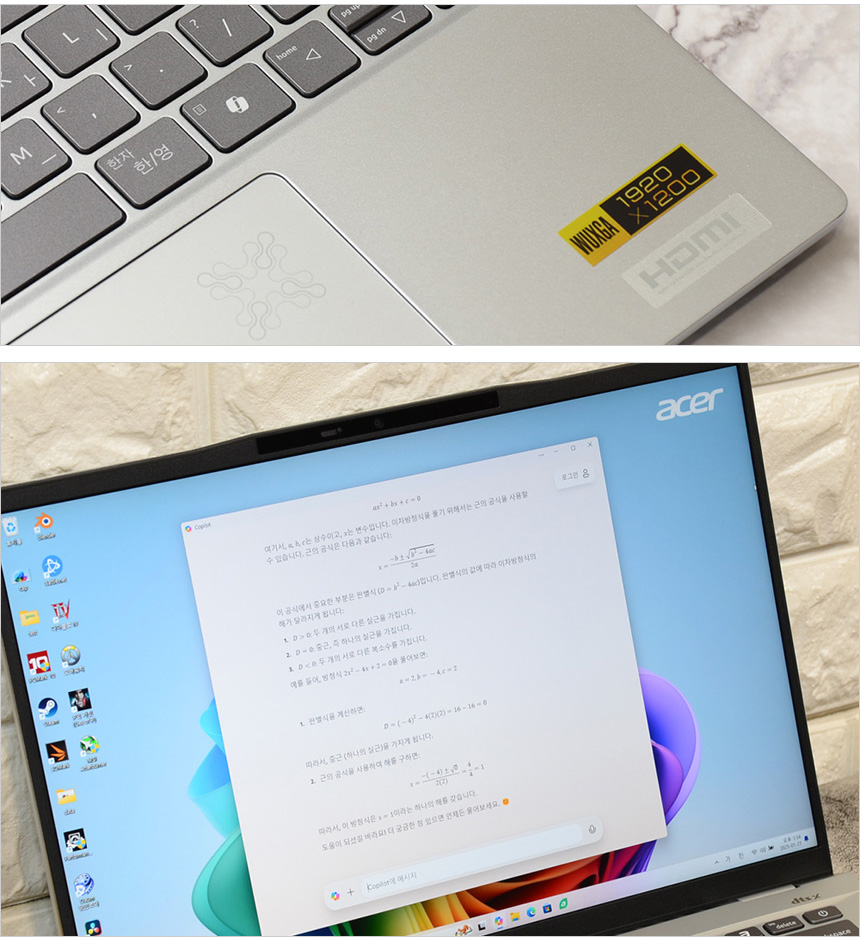 이번에 리뷰를 진행 할 ACER 스위프트 14 AI SF14-61T-R5B5 는 상단에 말씀드린 조건을 대부분 만족시키는 프리미엄 슬림 노트북으로 AMD 라이젠 AI 9 365 프로세서와 32GB 듀얼채널 LPDDR5X을 탑재해 문서작업이나 동영상 감상은 물론 영상편집과 같은 작업들도 부드럽게 실행할 수 있으며 AI 처리 효율성을 극대화 하기 위해 설계된 전용 AI 엔진을 탑재해 빠른 작업처리와 멀티테스킹 강화 등 생산성을 한층 높일 수 있다.