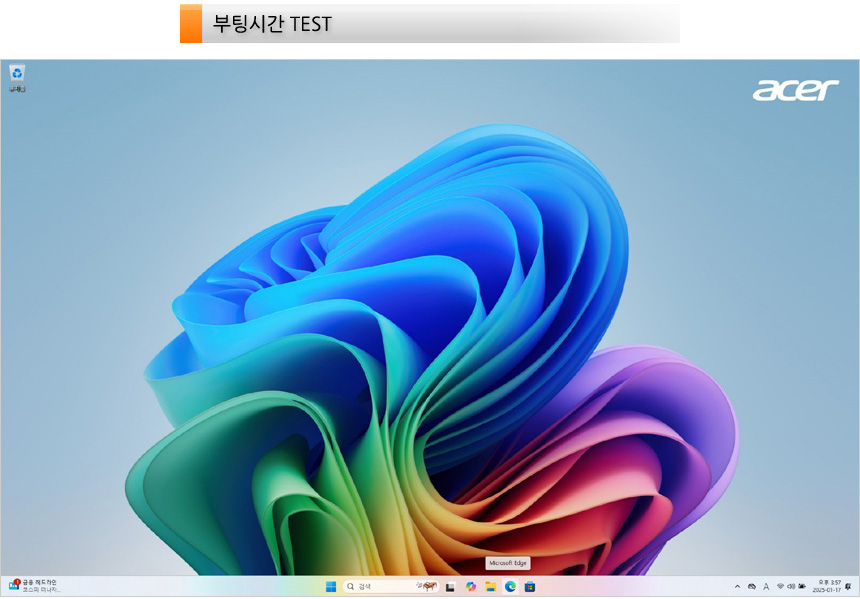 노트북이 완전히 꺼진 상태에서 전원 버튼을 눌러 바탕화면이 노출될 때 까지의 시간 (콜드부팅) 을 측정했는데 12.5초가 소요되었다. 기다림의 지루함 없이 노트북을 사용할 수 있을 것이다.