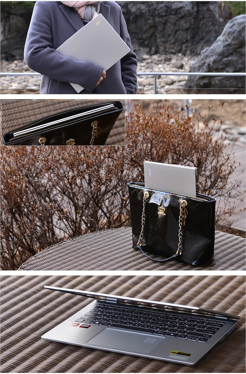 고성능 노트북이지만 312.9 x 222.11 x 10~17.9 mm 의 작은 크기와 1.32Kg 에 불과한 가벼운 무게로 편하게 들고다니며 사용할 수 있다. 일반 서류가방에 쏙 들어가는 컴팩트한 사이즈로 노트북 전용가방을 사용해야 하는 대화면 노트북 대비 편하게 휴대할 수 있으며 가벼운 무게로 장시간 휴대시 피로감을 최소화 했다. 여기에 하루종일 사용할 수 있는 긴 배터리 사용시간이 더해져 외부에서 편하게 노트북을 활용할 수 있다.