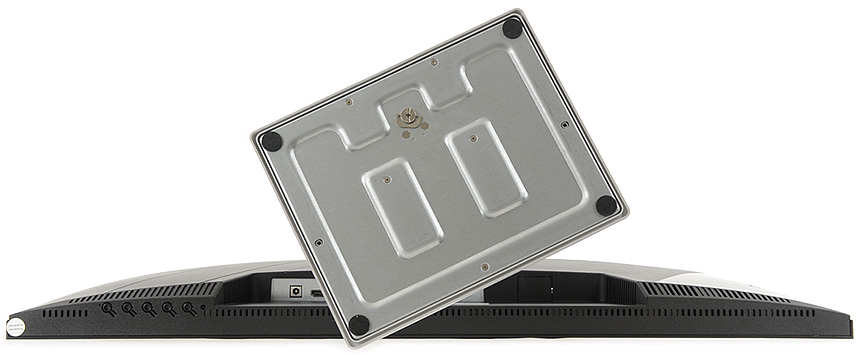 모니터 후면부의 모습으로 상단에 통풍구가 설치되어 있고 하단에는 도난 방지를 위한 시큐리티 홀이 제공되는 것을 확인할 수 있다.