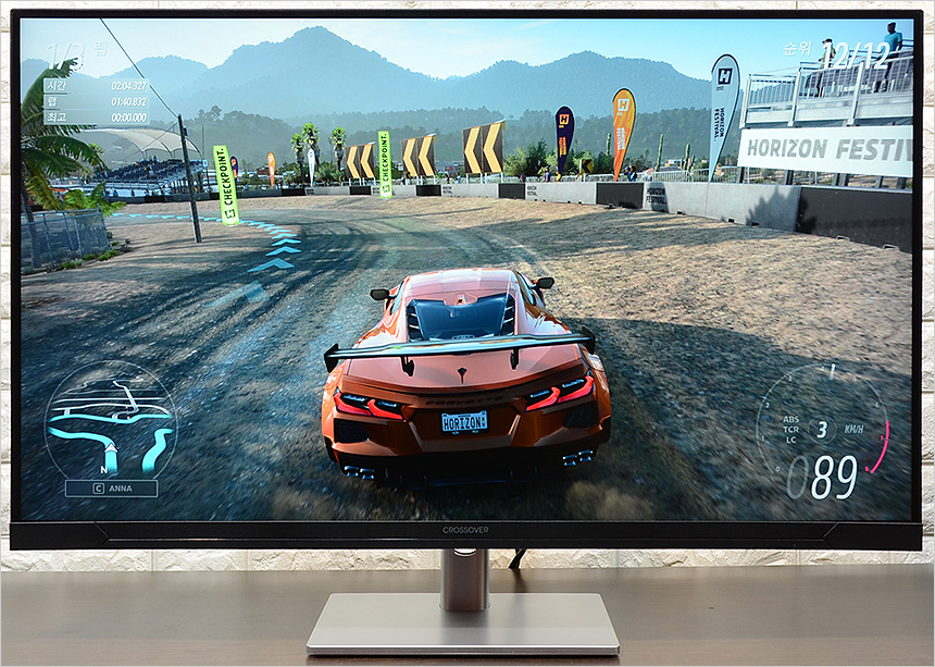 포르자 호라이즌 5 와 P의 거짓을 플레이 하고 있는 모습으로 색 선명도가 상당히 뛰어난 것을 확인할 수 있었으며 프리싱크와 지싱크 호환 기술을 제공하는 모델답게 빠르게 움직이는 레이싱 게임에서도 화면을 찢어짐 현상은 느껴지지 않았다.