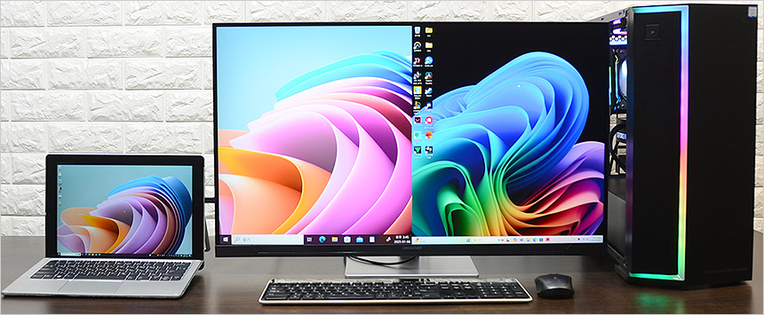 KVM 기술을 지원해 데스크탑 PC에서 사용하던 키보드와 마우스를 연결된 노트북 조작용으로 활용할 수 있다. 상단의 사진은 PC와 노트북을 연결한 모습으로 리모콘에서 핫키를 지원해 손쉽게 디바이스를 선택할 수 있었다. (동영상을 확인하기 바란다.)