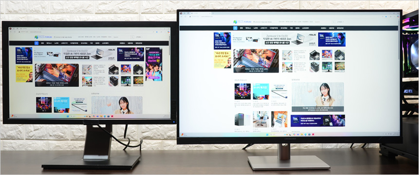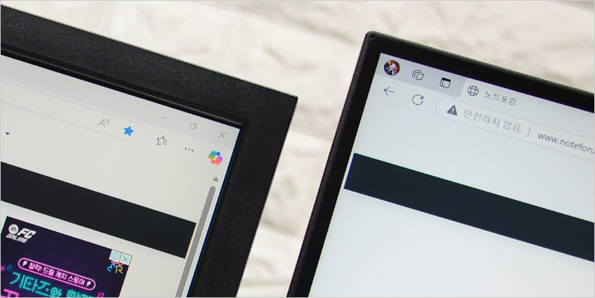 플리커 프리 테스트를 하는 김에 두 제품의 베젤 두께를 비교해 보았는데 확연한 차이가 발생하는 것을 확인할 수 있었다. 두꺼운 베젤로 인한 거슬림 없이 영상에 몰입하고 싶다면 좋은 선택이 될 것이다.