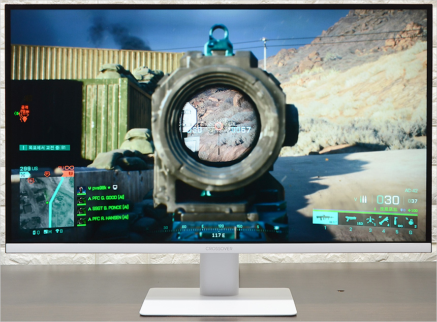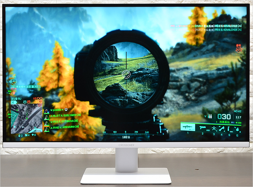 뛰어난 화질도 무척 마음에 들었다. Fast IPS 패널을 탑재한 모델답게 밝고 선명한 영상을 보여주었으며 다양한 화면모드 설정이 가능하고 블랙 레벨을 지원해 실내나 야간맵에서도 확연한 구분감을 제공했다. 또한 사진과 같이 대형 조준선을 지원해 저격모드 등에서 보다 정확하게 사격을 할 수 있었다.