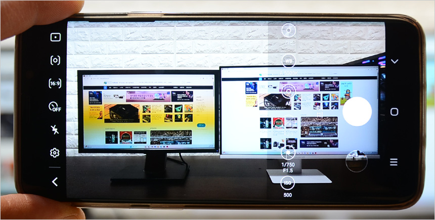 스마트폰을 이용하면 모니터의 플리커 현상을 확인할 수 있다. (프로 모드를 선택하고 셔터스피드 1/300 이상으로 셋팅) 테스트용 모니터는 플리커 현상이 발생하는데 반해 크로스오버 27QAW9 은 깜빡임 없이 부드러운 영상을 재생해 주었다. (동영상에서 자세히 확인할 수 있다.)