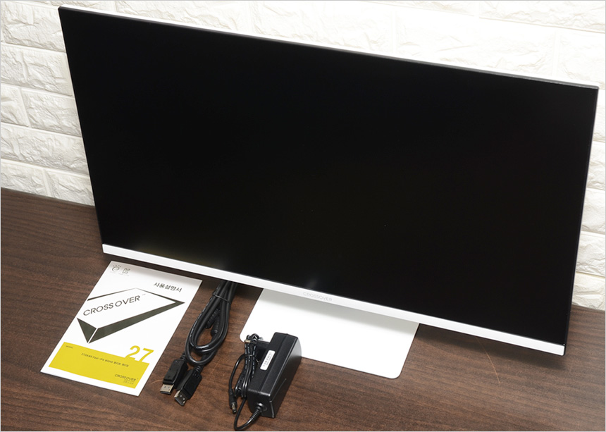 풀KIT의 모습으로 모니터를 비롯해 케이블 일체형 전원 어댑터와 DP 케이블, 사용설명서가 제공되는 것을 확인할 수 있다.
