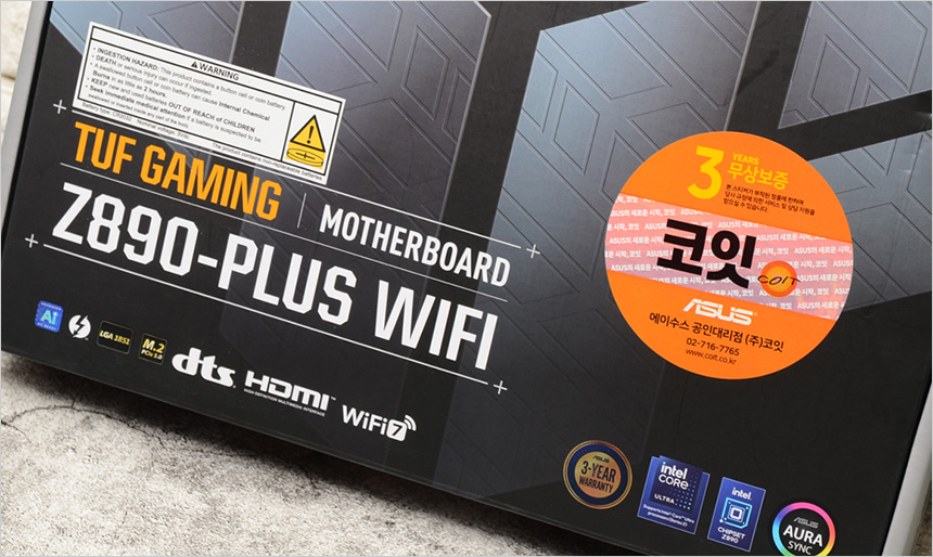 리뷰를 진행하는 ASUS TUF Gaming B760M-PLUS II 는 인텔 데스크탑과 서버 CPU 등의 국내 공급을 주도하고 ASUS, ECS, 삼성 등의 제품을 유통하는 에이수스 공인 대리점 코잇에서 유통 및 A/S를 진행하고 있다. 3년 무상보증을 지원하며 메인보드 사용중 문제가 발생했을 때 코잇으로 연락하면 빠르게 조치를 받을 수 있다.