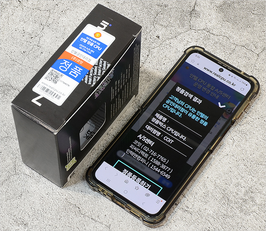 인텔 정품 CPU는 공인 대리점을 통해 신속 정확한 점검과 빠른 교체가 가능하다. 박스에 부착된 QR코드를 스마트폰으로 스캔하면 정품 여부 및 A/S 센터 연락처 확인이 가능해 문제가 생겼을 때 빠르게 대응할 수 있다.