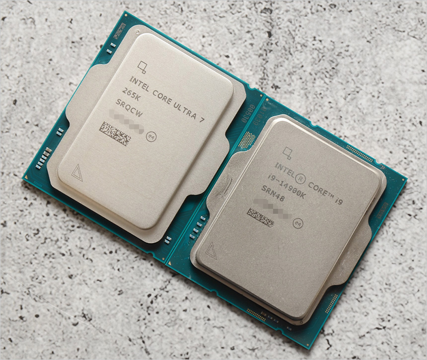 14세대 인텔코어 인텔코어와 인텔코어 울트라 프로세서를 비교한 모습으로 핀 배열과 히트싱크 디자인은 다르지만 크기가 동일한 것을 확인할 수 있다. 이런 이유로 기존에 사용하던 수랭쿨러를 장착하는데 전혀 문제가 없었다.