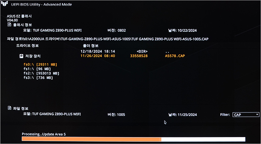 홈페이지에 최신 바이오스가 등록되어 있어 메모리에 저장후 바이오스의 EZ 플래시 4 유틸리티로 이동해 바이오스 업데이트를 진행해 보았다. 셋팅이 간편해 초보자도 쉽게 업데이트 작업을 할 수 있을 것이다. (메인보드와 프로세서 출시가 얼마 되지 않아 활발하게 업데이트가 진행되고 있다. 가끔씩 확인후 메이저 업데이트시 적용하기 바란다.)