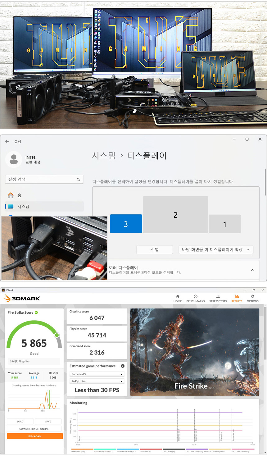 HDMI 와 DP 뿐만 아니라 C타입 단자도 디스플레이 출력을 지원해 내장그래픽에서 3개의 모니터를 연결해 멀티테스킹을 할 수 있다. (고성능 시스템이 필요하지만 그래픽카드는 사용할 필요가 없는 주식용 등에서 유용하게 활용할 수 있다.) 특히 인텔코어 울트라 200S 프로세서는 UHD 내장그래픽을 사용한 전작대비 3D 성능이 대폭 향상되었다. 내장그래픽 기반에서도 더 편하게 PC를 사용할 수 있을 것이다.