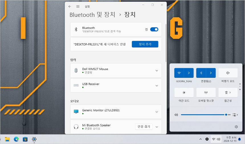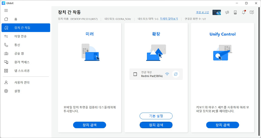 생산성을 높이기 위해 ASUS 글라이드 X를 지원한다. 유선이나 무선 연결을 통해 태블릿PC나 스마트폰과 파일전송이 가능하며 화면공유와 제어 등이 가능해 유용하게 활용할 수 있을 것이다. 상단의 사진은 디스플레이 확장을 테스트 하고 있는 모습으로 태블릿PC를 모니터 처럼 사용할 수 있었다.