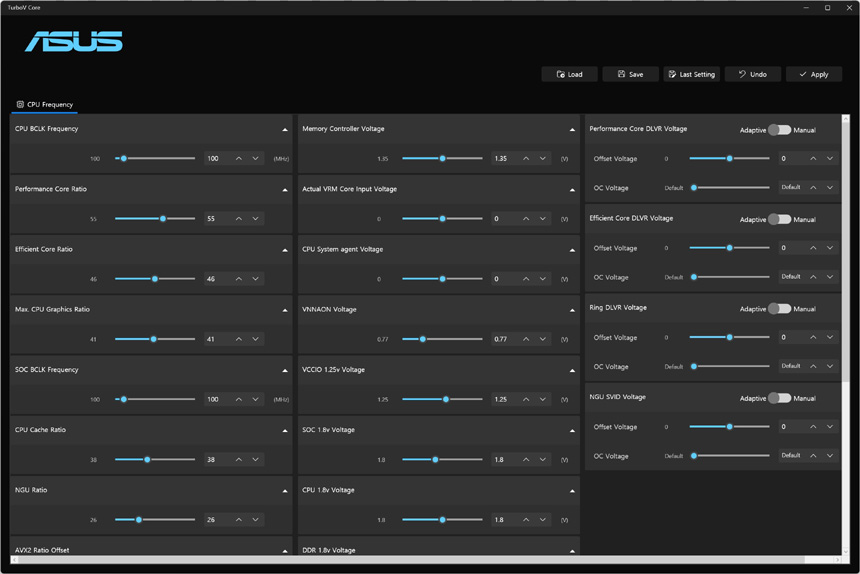 TurboV Core S/W를 사용하면 바이오스에 들어갈 필요없이 사용자가 모든 전압을 일일이 설정할 수 있다. (함부로 만지면 큰 문제가 발생할 수 있다. 초보자는 전압 모니터링 용도로만 사용하기 바란다.)