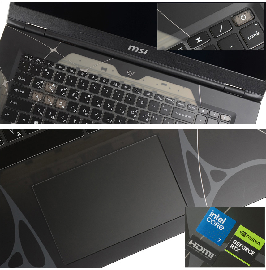 키보드 상단에는 다양한 단축키를 제공해 편하게 노트북을 사용할 수 있으며 측면에는 반투명 재질로 시인성을 높인 전원 버튼이 설치된 것을 확인할 수 있다. 또한 팜래스트 중앙에는 16:10 비율의 대형 멀티 터치패드가 장착되어 마우스를 사용하기 힘든 외부에서도 편하게 노트북을 조작할 수 있다.