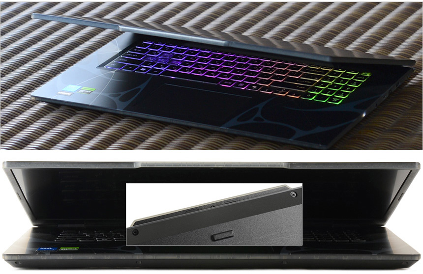 키보드의 모습으로 17.3형 대화면 노트북 답게 텐키가 포함된 풀사이즈 키보드가 장착되어 있다. 특히 키캡 테두리 부분까지 조명이 적용되어 확연한 구분감을 제공하며 단색의 백라이트를 지원하던 전작과 달리 4존 RGB 백라이트를 지원해 아름다운 조명 효과를 즐길 수 있었다. 또한 게이밍 노트북 답게 WASD 키에 포인트를 주어 구분감을 높였다.
