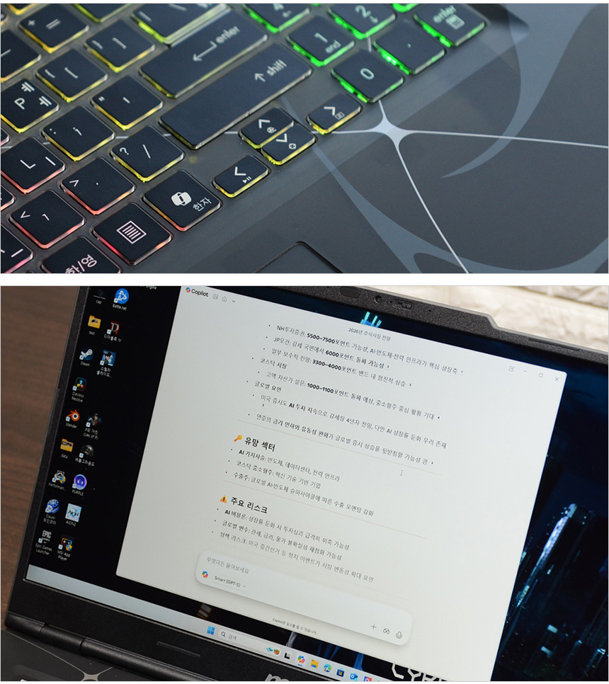 코파일럿 전용키를 지원해 편하게 사용할 수 있다. 상단의 사진은 코파일럿을 실행한 모습으로 부드럽게 작동하는 것을 확인할 수 있었다. AI 가 막연하게 느껴진다면 가장 먼저 코파일럿을 활용해 보기 바란다. 업무나 학습에서 많은 도움을 받을 수 있을 것이다.