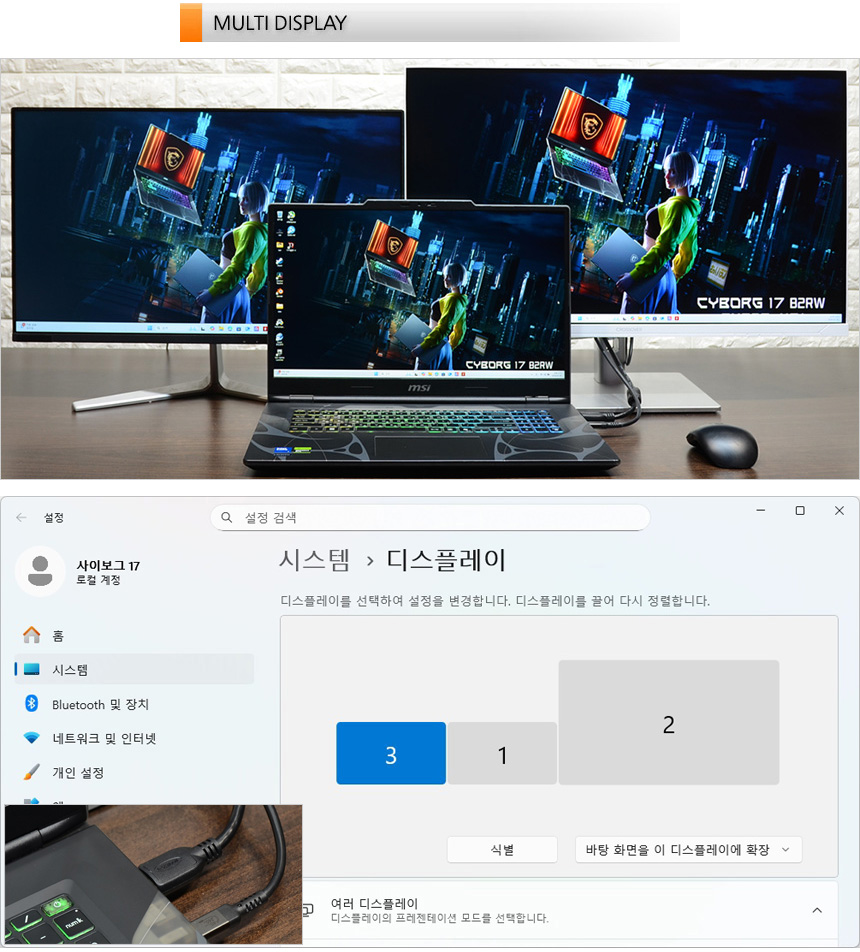 HDMI 뿐만 아니라 C타입 단자도 영상 출력을 지원해 총 3개의 디스플레이를 사용할 수 있다. 4K@60Hz 도 가능해 게임은 물론 다중창 사용이 필수적인 업무나 학습용 으로도 유용하게 활용할 수 있다.