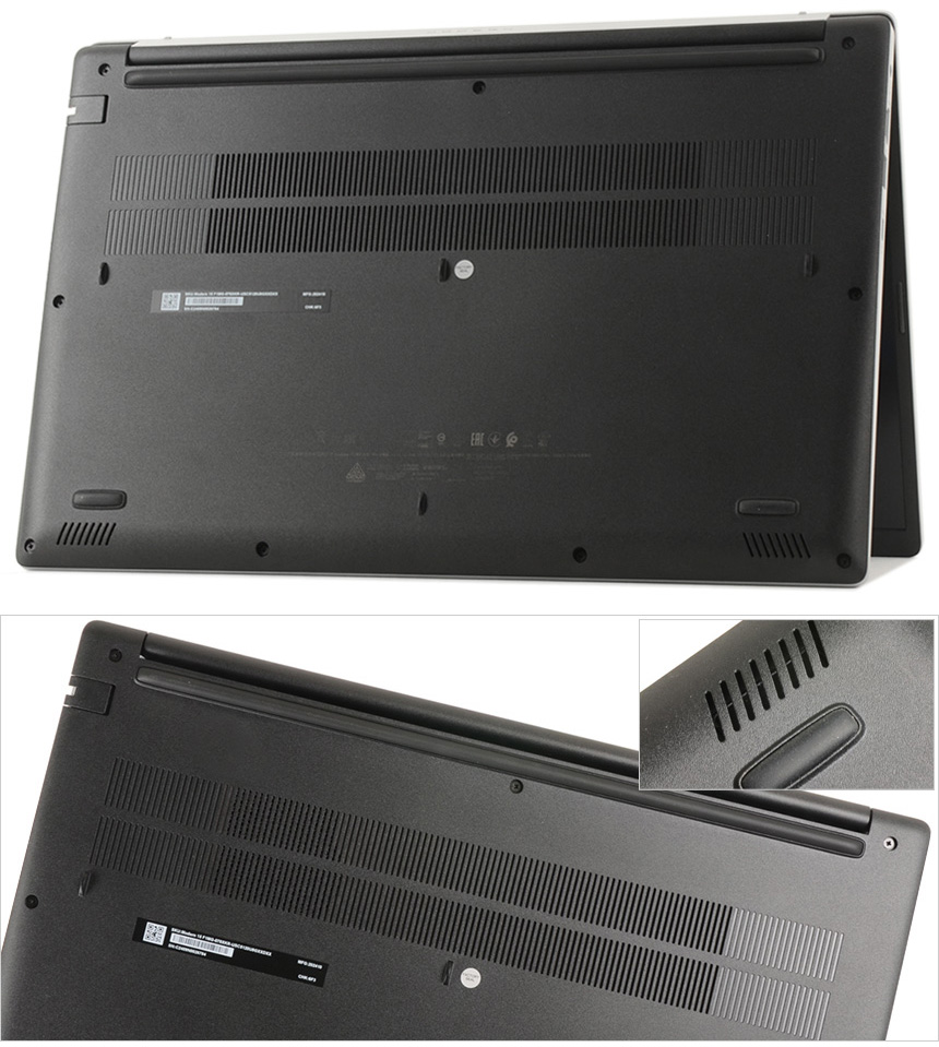 노트북 바닥면의 모습으로 공기가 내부로 원활하게 유입될 수 있도록 팬과 전원부가 설치된 상단에 통풍구를 제공하며 미끄러짐 방지 및 충격 흡수를 위해 두꺼운 고무 패드를 적용했다. 또한 하단에는 스피커가 장착되어 동영상이나 음악을 편하게 즐길 수 있다.