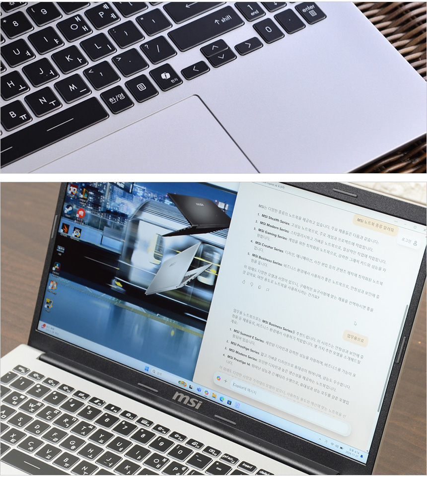 전용 S/W를 제공해 편하게 노트북 기능을 설정할 수 있는점도 매력적이며 어반 실버 컬러 특유의 세련된 외관과 강의실에서도 사용할 수 있는 정숙함, 뛰어난 휴대성도 장점이라 말씀드리고 싶다. 또한 다양한 AI 기술을 활용할 수 있는점도 인상적이었다.