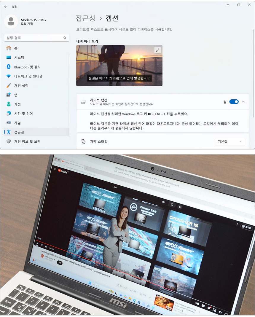 AI 가 음성을 텍스트로 변환해 주는 라이브 캡션 기능을 사용할 수 있다. 다양한 언어의 오디오 자막을 텍스트로 표시해 주어 사무실 등에서 스피커나 이어폰을 사용하기 힘들 경우나 화상회의 에서 적극적으로 사용하기 바란다.