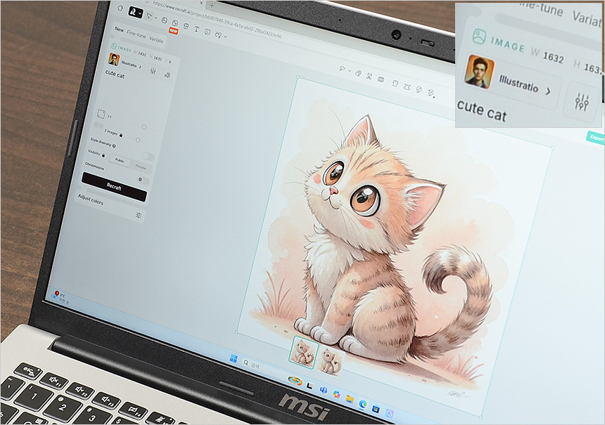 AI 사이트에서 생성형 AI를 테스트 하고 있는 모습으로 텍스트를 입력했을 때 빠르게 사진이나 그림을 제작해 주었다. NPU가 탑재된 모델이 아니기 때문에 높은 성능을 필요로 하는 AI 작업용으로는 부적합 하지만 캐주얼한 AI 작업은 원활하게 실행할 수 있다.