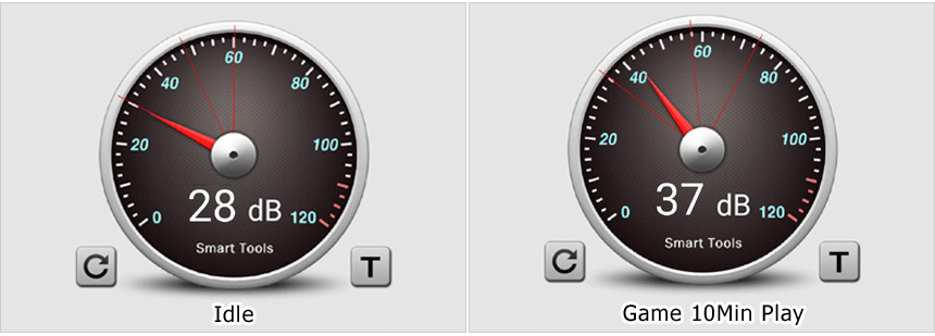 팬소음 테스트를 진행하고 있는 모습으로 아이들이나 캐주얼한 작업에서는 팬소음이 거의 들리지 않았으며 게임을 실행해도 팬소리가 작아 스트레스를 주지 않았다. 조용해야 하는 강의실 등에서도 편하게 사용할 수 있는 노트북이다.