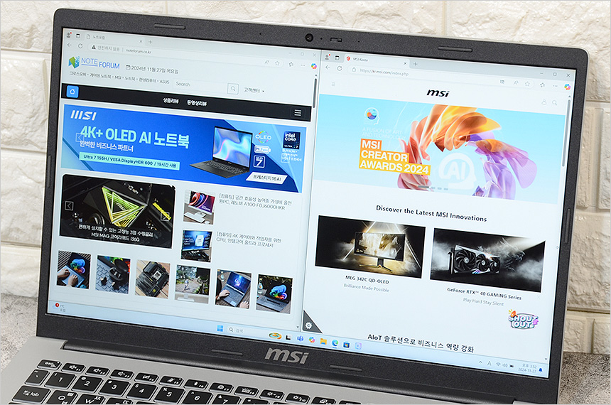 벤치마크 프로그램을 이용해 기기의 성능을 확인하고 있는 모습으로 보급형 노트북과는 확연한 차이를 보여주었다. 물론 게이밍이나 크리에이터 노트북과 비교할 수준은 아니지만 고성능을 필요로 하는 업무용 S/W를 실행하거나 다중창을 띄어두고 작업 및 학습을 해야할 경우 성능으로 인한 스트레스는 없을 것이다.