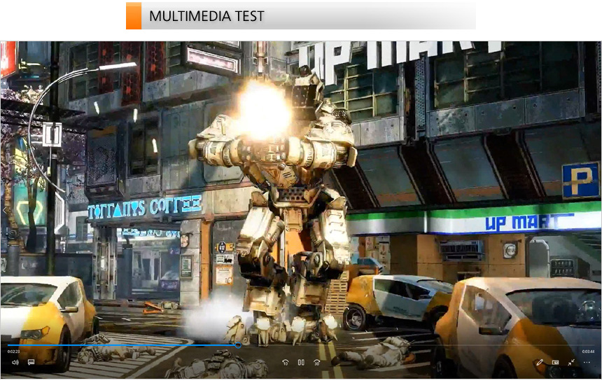4K 동영상을 이용해 멀티미디어 테스트를 진행하고 있는 모습으로 15.6형 대화면에 울트라씬 베젤 탑재로 시원시원한 영상을 즐길 수 있었으며 IPS 타입 특유의 선명한 화질로 즐겁게 영상을 즐길 수 있었다. 250nit 의 밝기를 지원하지만 실내에서는 영상을 즐기는데 전혀 부족함이 느껴지지 않았다.