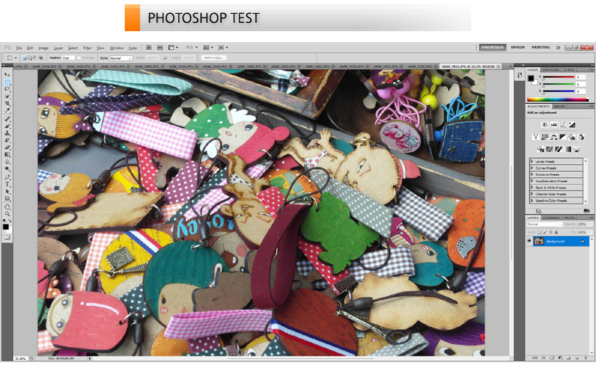 포토샵을 이용해 사진편집 테스트를 진행하고 있는 모습으로 원활하게 작업을 진행할 수 있었다. 16GB 이상으로 메모리를 업그레이드 해주면 디자인 작업용으로도 충분히 활용할 수 있을 것이다.?@ 총 46장의 원본 사진 (총 180MB) 을 로딩하는데 걸리는 시간을 측정했는데 17초가 소요되었다.
