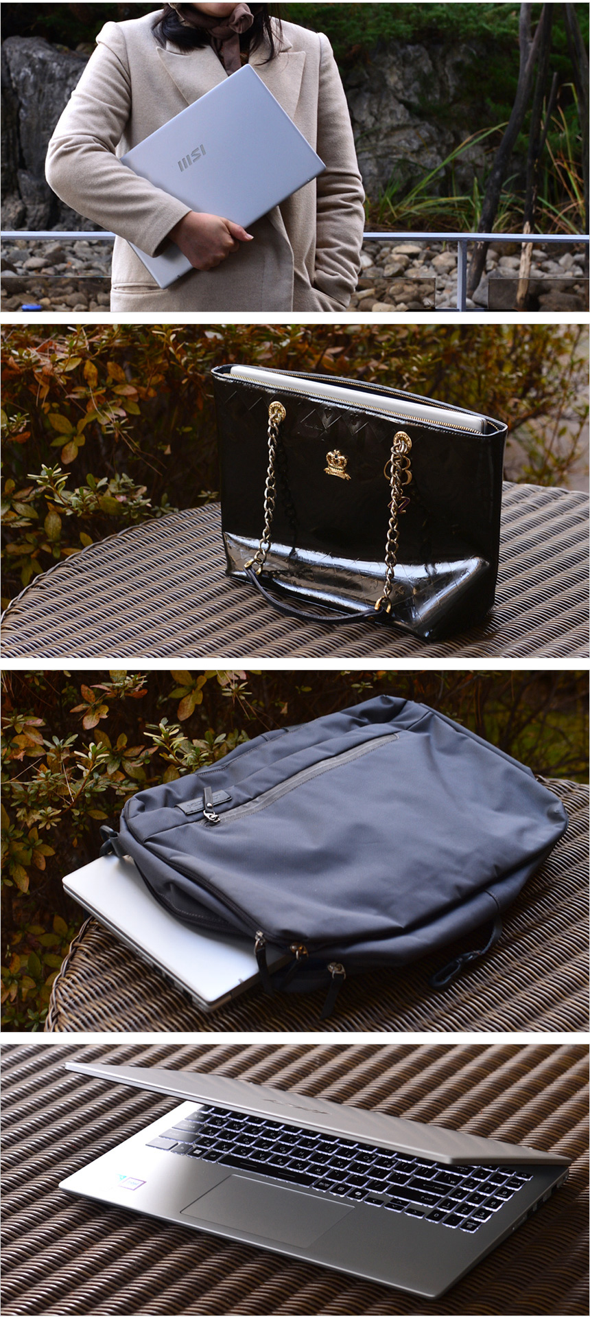 도입부에서 언급한 것과 같이 14형과 15.6형 모델이 판매되고 있어 휴대성에 따라 제품을 선택할 수 있다. 특히 14형 모델의 경우 여성들의 숄더백에 들어갈 정도로 크기가 작고 무게도 1.4Kg에 불과해 더 편하게 들고 다니며 사용할 수 있다.?(항상 휴대해야 한다면 14형 모델을 구입하기 바란다.)