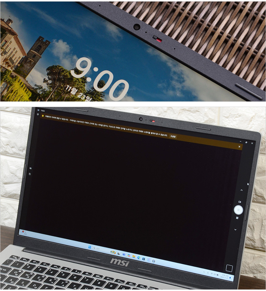 웹캠을 이용한 비주얼 해킹이나 사생활 침해를 원천적으로 차단할 수 있도록 카메라에 프라이버시 셔터가 장착된 것을 확인할 수 있다. 물리적으로 카메라를 가려주기 때문에 해킹으로 노트북 권한을 획득 하더라도 사용자나 주변 상황을 전혀 볼수 없다.