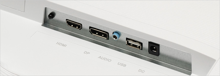 기본 장착된 스탠드를 분리하면 100mm 베사홀이 제공되어 벽에 걸거나 ARM 등에 장착해 사용할 수 있으며 하단에는 HDMI 와 DP 단자 및 오디오 OUT 단자가 제공되어 다양한 디바이스와 연결해 활용할 수 있다. 또한 USB 단자를 지원해 스마트폰 충전용으로 활용할 수 있다.