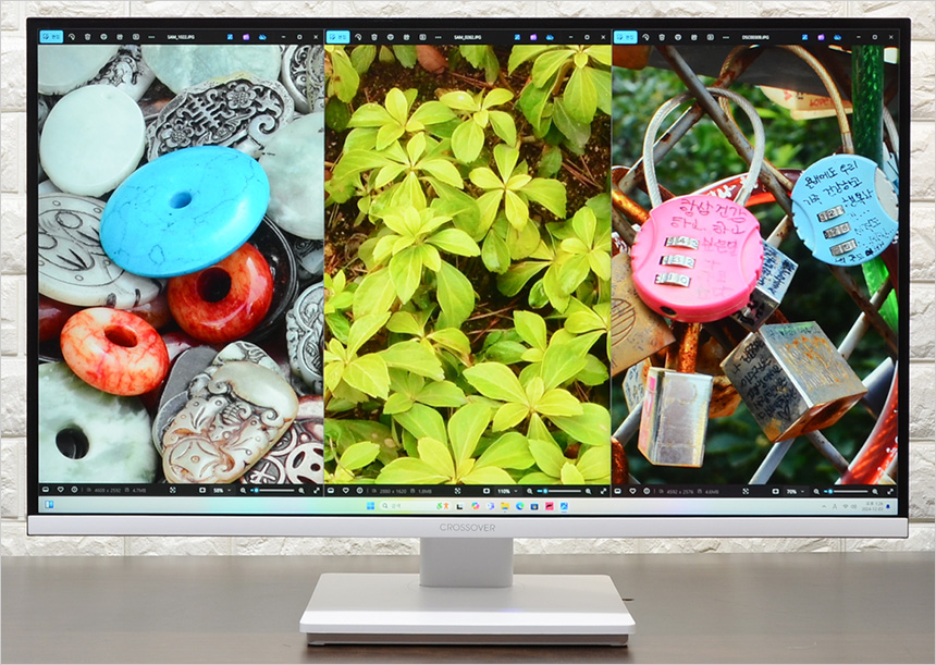 JPG 원본파일을 이용해 테스트를 진행하고 있는 모습으로 컬러 구분감이 확연할 뿐만 아니라 진하고 선명한 색감을 보여주었다. 밝기도 상당히 높고 색 정확도도 뛰어난 제품으로 게임이나 동영상 감상 뿐만 아니라 사진편집이나 심플한 디자인 등의 작업용으로도 충분히 활용할 수 있다.