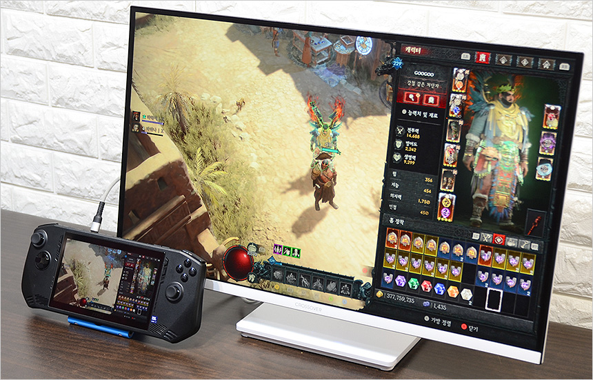 HDMI 단자를 지원해 PS5 나 XBOX 와 같은 게임콘솔과 연결해 게임을 즐길 수 있으며 최근 많은 유저들이 사용하고 있는 게이밍 UMPC와 연결해 대화면으로 게임을 플레이 할 수 있다.?(C타입 to HDMI 케이블로 연결했다.)