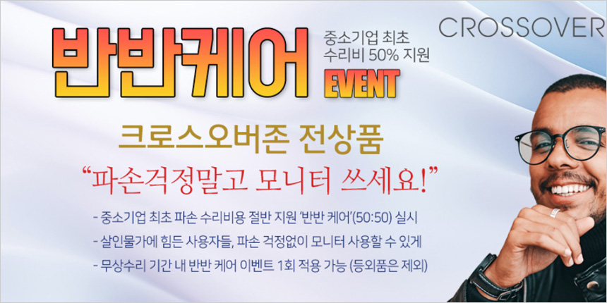크로스오버 전상품은 5억원 생산물 배상 책임보험에 가입되어 있으며 중소기업 최초로 수리비 50%를 지원하는 반반케어 이벤트를 진행하고 있어 안심하고 사용할 수 있다.?(무상수리 기간내 파손이 발생했을 때 수리비용의 절반을 지원한다.)