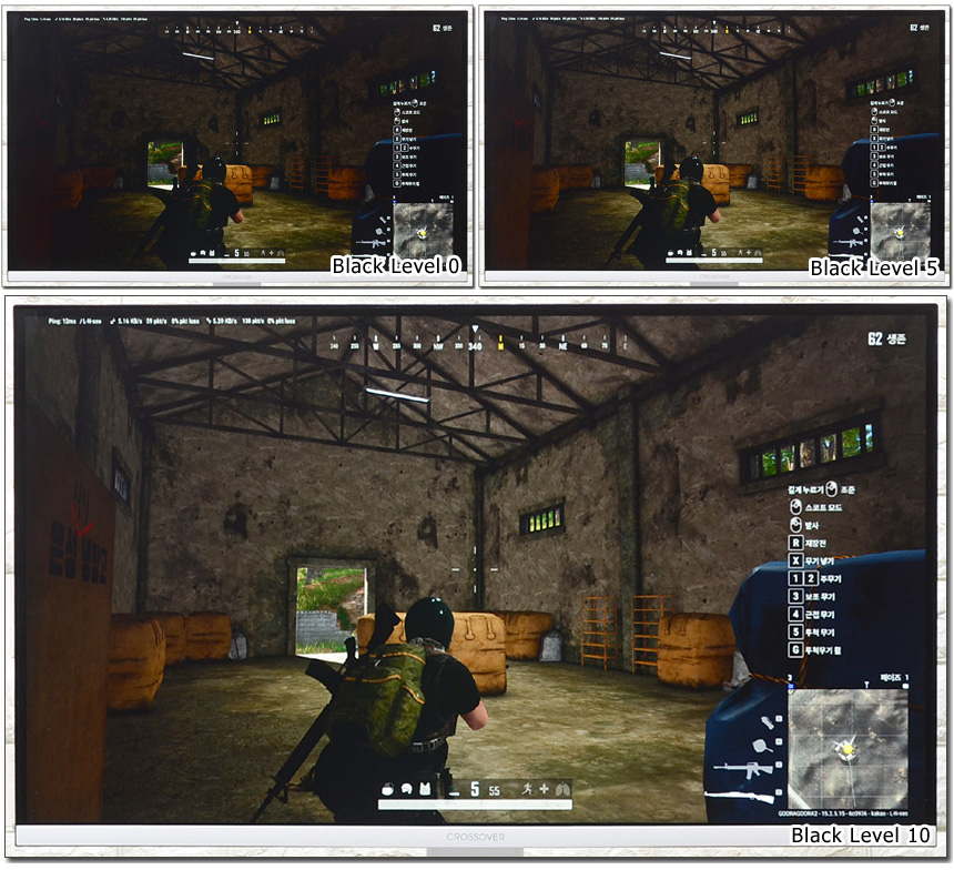 10단계 블랙레벨 설정을 지원한다. 야간맵이나 실내가 많은 맵에서 사용하면 손쉽게 시인성을 높일 수 있다.