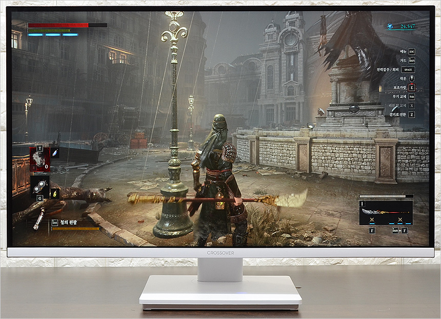 P의 거짓과 팰월드를 이용해 게임 테스트를 진행하고 있는 모습으로 QHD 해상도를 지원하는 IPS 특유의 진한 색감이 인상적이었으며?(보급형 모니터와는 확연히 다른 영상을 보여주었다.)?높은 밝기를 지원하고 블랙 레벨 설정도 가능해 야간이나 실내맵에서도 명확하게 배경과 캐릭터를 구분할 수 있었다. 또한 지싱크 호환 기술을 지원해 화면 찢어짐 등의 오작동이 발생하지 않는점도 칭찬하고 싶다.