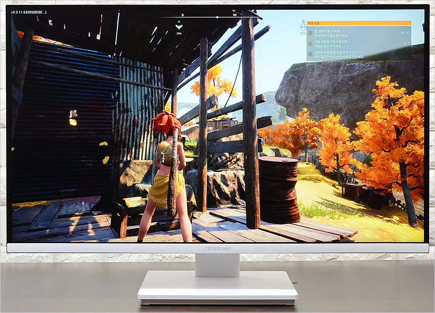 기기의 디자인은 기존 크로스오버 모니터들과 달리 화이트 컬러를 사용해 밝고 화사한 느낌을 준다. 마감 완성도도 상당히 뛰어나 고급스러운 느낌을 자아내는 제품으로 가성비 게이밍 모니터를 선호하지만 디자인을 중요하게 고려하는 유저들에게 추천하고 싶다.