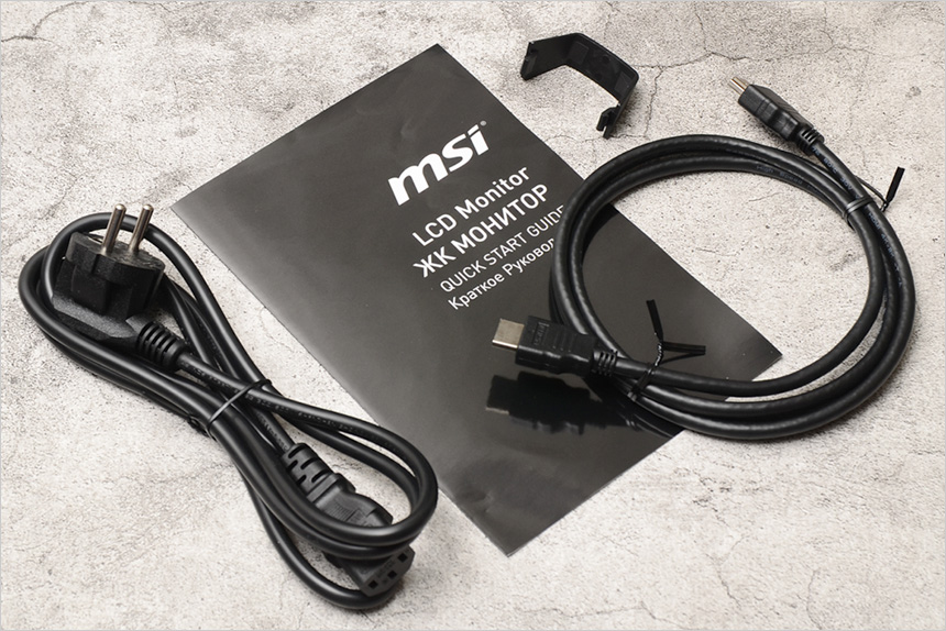 기본 제공되는 액세서리의 모습으로 전원 케이블과 HDMI 케이블을 비롯해 퀵 매뉴얼과 케이블 홀더가 포함된 것을 확인할 수 있다.
