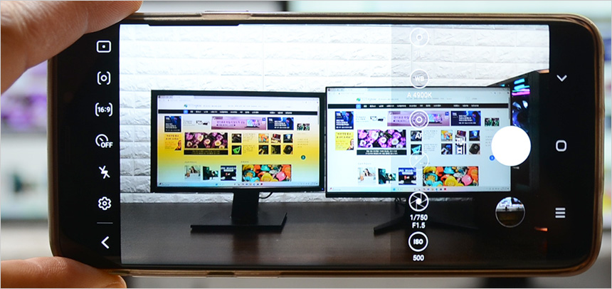플리커 현상이 있는 구형 모니터와 함께 셋팅해 플리커 여부를 확인하고 있는 모습으로 화면이 계속 깜빡이는 구형 모니터와 달리 깜빡임이 전혀 발생하지 않는 것을 확인할 수 있었다. 장시간 편하게 게임을 즐길 수 있을 것이다. (눈으로 보면 플리커 여부를 확인할 수 없다. 스마트폰 카메라를 매뉴얼 모드로 설정하고 셔터스피드를 1/300초 이상으로 셋팅하면 플리커 여부 확인이 가능하다.) @ 동영상을 통해 확인하기 바란다.