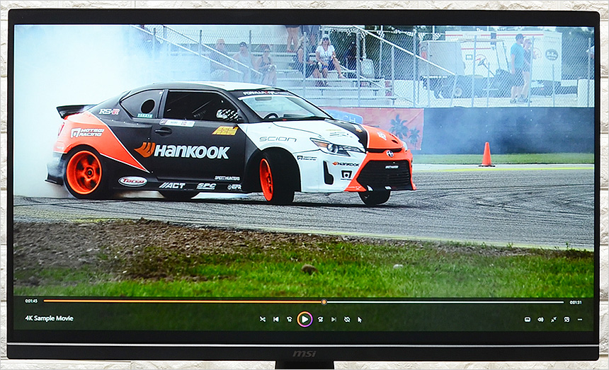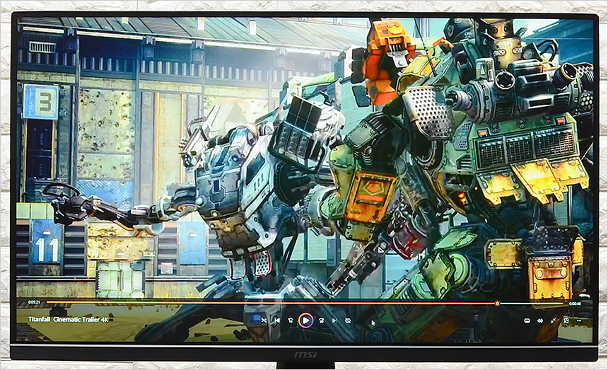 4K 동영상을 이용해 테스트를 진행하고 있는 모습으로 27형 대화면에 슬림 베젤을 지원해 24형 모델과 비교되는 탁 트인 시원한 영상을 즐길 수 있었으며 FHD 해상도 모델임에도 디테일이 상당히 뛰어난 것을 확인할 수 있었다. 색 자체가 상당히 선명하고 암부 표현력도 뛰어나 동영상을 즐기는 용도로도 유용하게 사용할 수 있을 것이다.