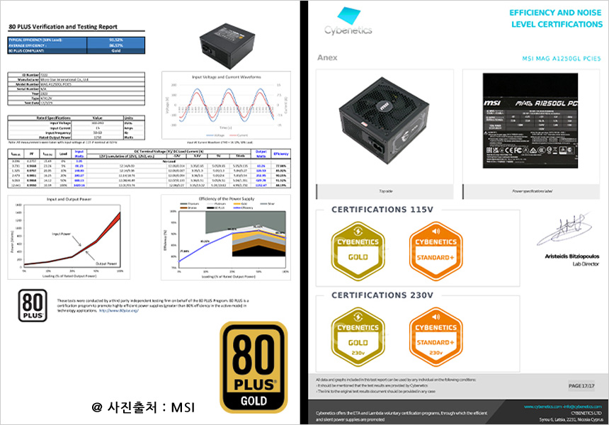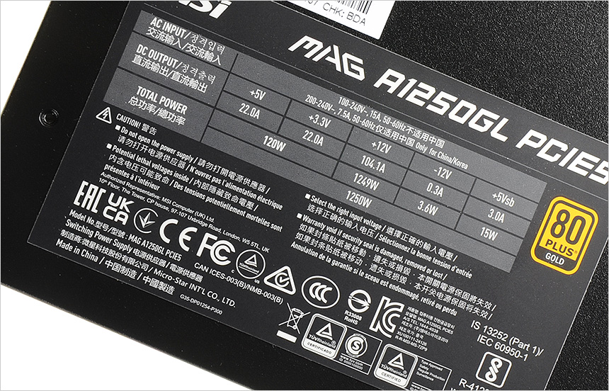 최상의 전력효율 제공하는 파워서플라이, MSI MAG A1250GL 80PLUS 골드 풀모듈러 ATX 3.1