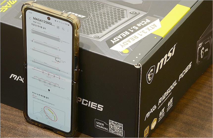 MSI MAG A1250GL 80PLUS 골드 풀모듈러 ATX 3.1은?기존 그래픽카드 보조전원인 12VHPWR 커넥터의 안정성 이슈를 불식시키기 위해 12V2x6 커넥터를 사용했으며 케이블 단자부를 듀얼컬러로 구성해 결착 여부를 눈으로 쉽게 확인할 수 있도록 디자인 했다.?@ 참고로 2023 컴퓨텍스에서 혁신상을 수상했다.