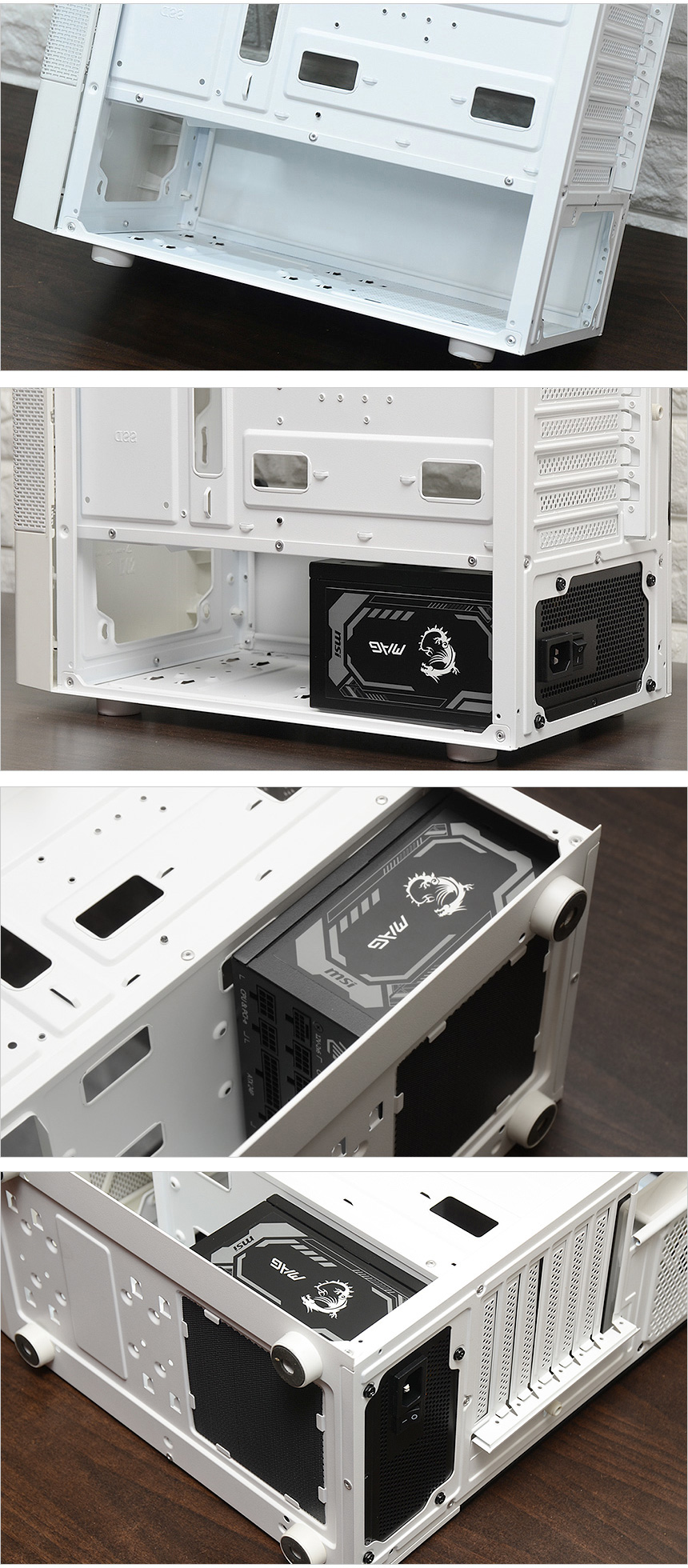 미들타워 PC 케이스에 파워 서플라이를 장착한 모습으로 케이블이 달려있지 않아 쉽게 장착할 수 있었으며 표준 사이즈 제품답게 여유가 넘치는 것을 확인할 수 있다. 길이가 길어 일반 케이스 사용에 제약이 있는 제품들과 달리 대부분의 PC 케이스에 쉽게 장착해 사용할 수 있다.
