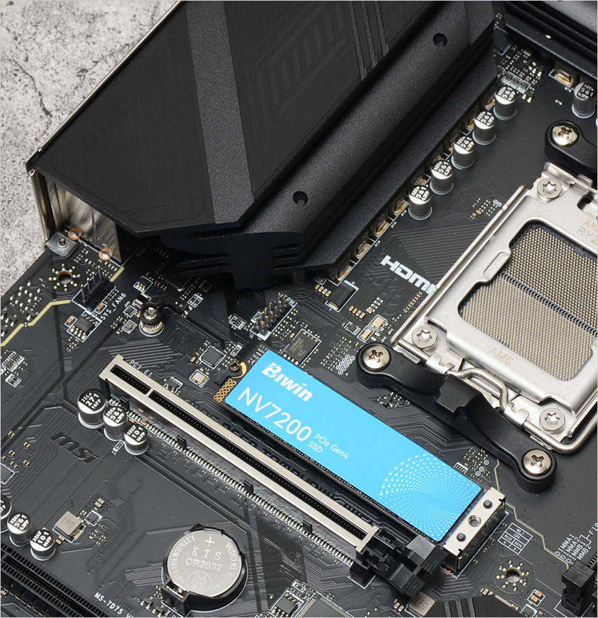 PS5에서 요구하는 SSD조건은 상당히 까다롭다. 고속 데이터 전송이 필요하기 때문에 PCIe 4.0 인터페이스 제품이어야 하며 5,500MB/s 이상의 읽기 속도를 지원해야 PS5에서 사용 가능하다. 또한 열이 많을 수밖에 없는 특성상 방열판 장착 모델을 권장한다. BIWIN NV7200 M.2 NVMe 는 메탈 방열판이 설치되지 않았지만 경쟁모델 대비 작동시 온도가 낮아 충분히 활용할 수 있을 것이다. (온도 관련 내용은 테스트 부분에서 자세히 알려드릴 예정이다.)