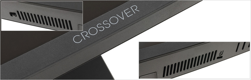 전면 하단부의 모습으로 중앙에 크로스오버 레터링이 세겨져 있으며 하단에는 2개의 5W 스피커가 장착되어 시원시원한 사운드를 즐길 수 있다. 또한 도난 방지를 위한 시큐리티 홀이 제공되며 리모콘 사용을 위한 센서도 부착된 것을 확인할 수 있다.