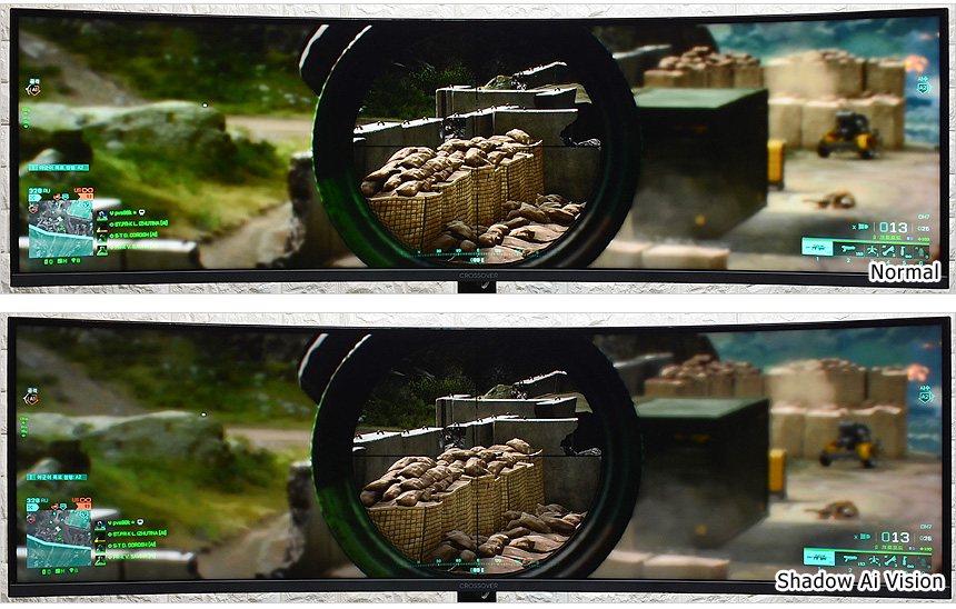 새도우 Ai 비전 기술이 적용되어 게임등에서 유용하게 활용할 수 있다. 밝기를 높이기만 하는 블랙레벨과 달리 이질적인 부분을 자연스럽게 조절하고 디테일을 개선해 영상 퀄리티를 높여주는 것을 확인할 수 있었다.