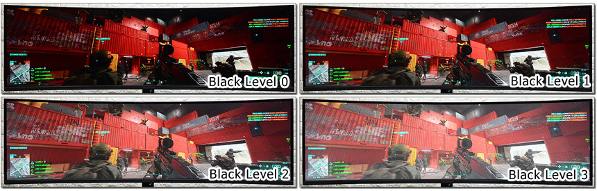 3단계 블랙레벨 설정을 지원해 사용자의 실행 게임이나 취향에 따라 조절할 수 있다. 과도하게 어두운 맵 등에서 유용하게 사용할 수 있을 것이다. (무조건 블랙레벨을 높게 설정한다고 좋은게 아니다. 밝아지는 만큼 색 표현력이 떨어지기 때문이다.)