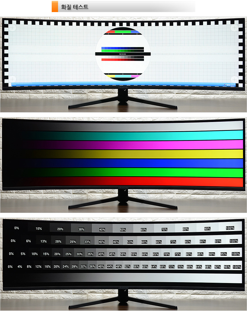 처음 제품을 받고 스펙을 확인했는데 VA패널이 탑재된 것을 확인하고 화질에 대한 걱정이 먼저 들었다. (그동안 테스트 했던 경쟁 모델들은 모두 IPS 패널을 사용했기 때문이다.) 컬러 표현력이 떨어지거나 시야각으로 인한 문제가 있을 것이라 예상하고 테스트를 진행했는데 기존과는 확연히 다른 모습을 보여주어 상당히 놀랐다.